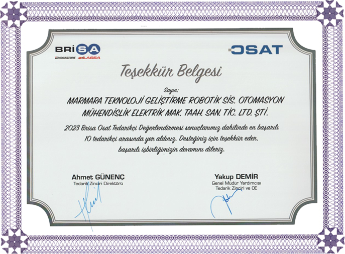 2023 Brisa Osat Tedarikçi Değerlendirmesi sonuçları dahlilinde en başarılı 10 tedarikçi arasında yer aldık.